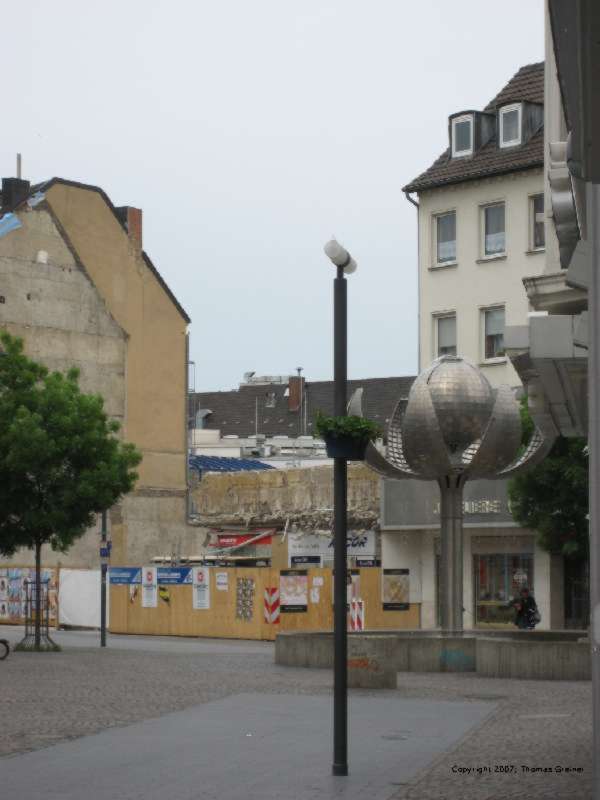 Das ganze einmal von der anderen Seite gezeigt. Vom Zugang Parkhaus Blondelstrasse aus fotografiert, erkennt man auf der anderen Seite rechts neben dem Tschibo Geschäft den Beginn der Harscampstrasse.